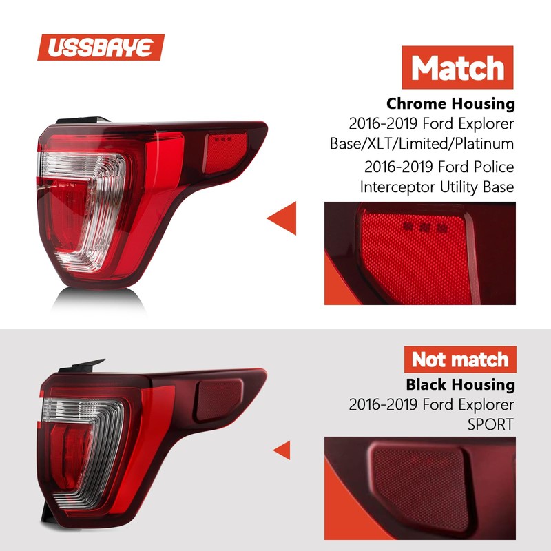 - Exact OEM Fit : Designed for 2016 2017 2018 2019 Ford Explorer Ford Explorer Base/XLT/Limited/Platinum/Police Interceptor Utility (Passenger Side / Right Rear). Direct replacement for OE# FB5Z13404A, matching factory look and performance.Attenrion : Match Chrome Housing not match Black Housing