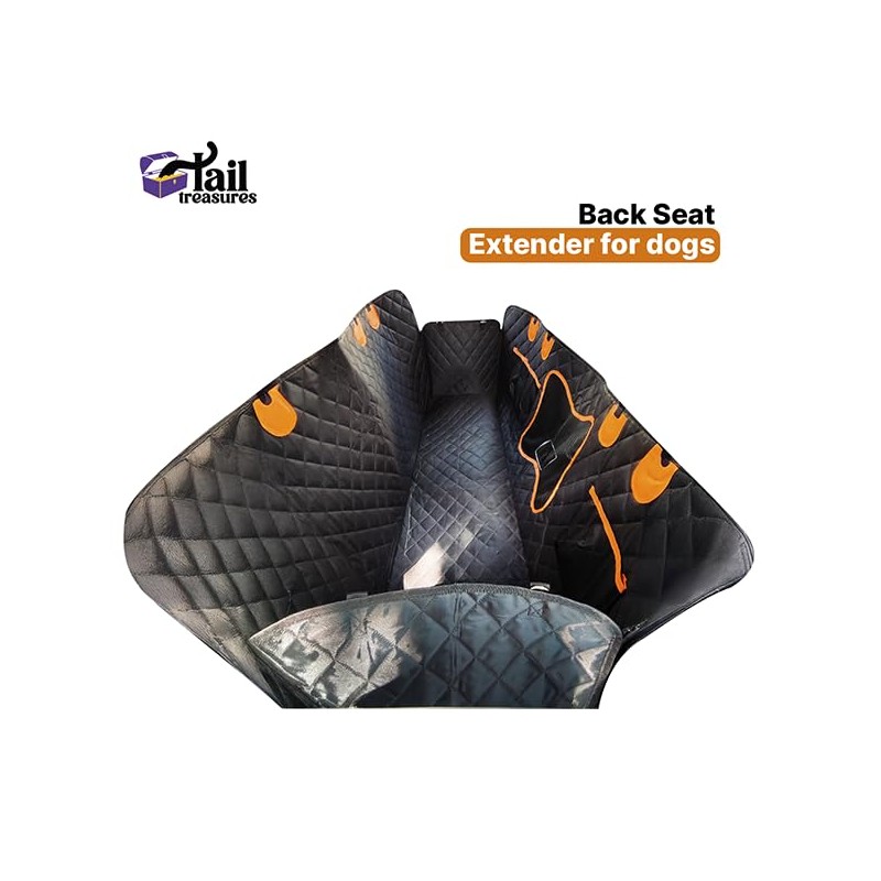 Tail treasures Back Seat Extender for Dogs – Waterproof Dog Car Seat Cover with Mesh Window | Non-Slip, Scratch-Resistant & Durable | Ultimate Dog Hammock for Car & SUV Travel