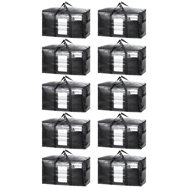 TAILI Extra Large Moving Bags, 10 Pack Black Heavy Duty Totes For Storage with Visible Window, Wrap Around Handles, Storage Bags for Space Saving, Alternative to Moving Boxes