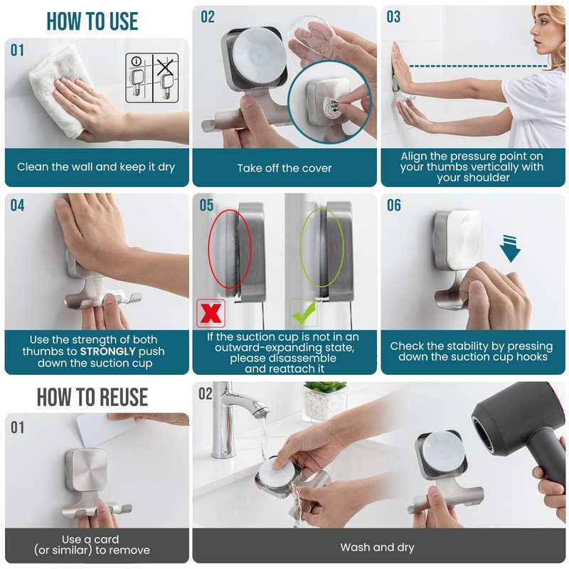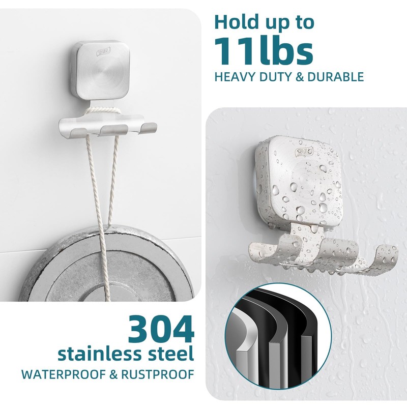 • 304 stainless steel: These upgraded TAILI hooks is designed with 304 stainless steel, which is not only rust-proof and waterproof, but also very stylish and elegant to install on tiles, glass, mirrors, metals and other reflective flat surfaces, giving you a harmonious and high-end feel. Believe you'll love it