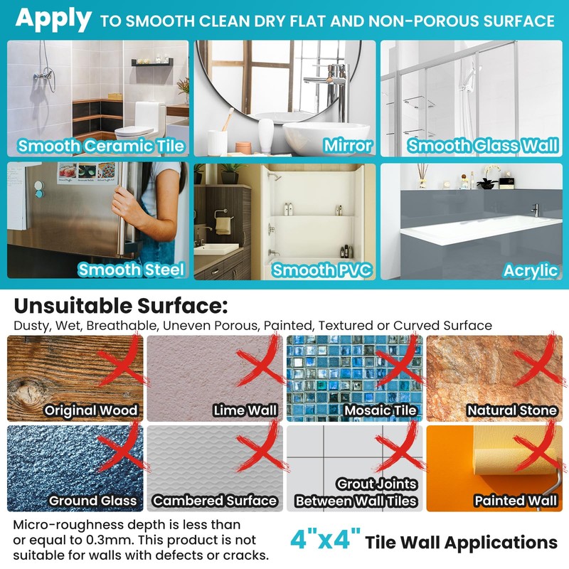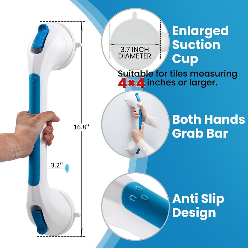 - Matters need Attention: For the safety of the seniors and elderly, please pay attention that the suction grab bars for shower ONLY sticks on smooth and non-porous AIRTIGHT walls which are NOT air-permeable like metal, glass, tile, marble, stainless steel and acrylic but does NOT apply on uneven tile, unfinished marble, wallpaper, dry wall, porous wall, etc. Please don't put all the body on the shower grip