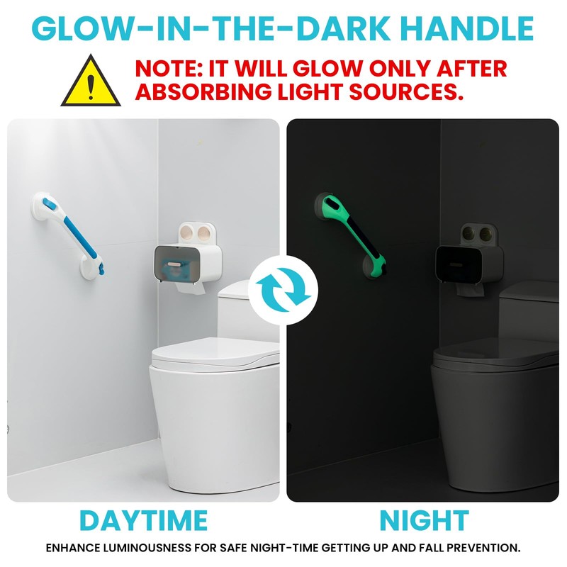 TAILI Shower Grab Bar Glow in The Dark, 16.8 in Grab Bars for Bathtubs, Shower Handles Bath Rails for Seniors and Elderly, Bathroom Safety Grip Removable No Drilling Waterproof Blue