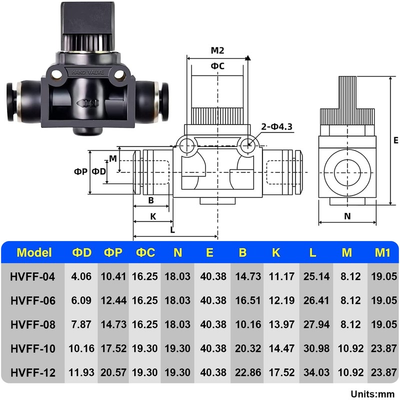 TAILONZ PNEUMATIC 4mm OD Manual Flow Switch Valve HVFF-4 (Pack of 2)