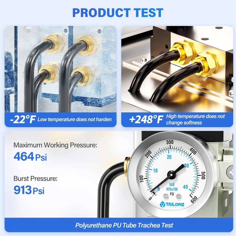 - 【Pressure】Burst Pressure:913Psi;Maximum Working Pressure:464Psi