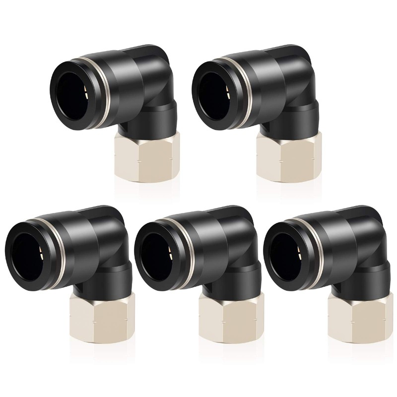 TAILONZ PNEUMATIC Female Elbow 1/2 Inch Tube OD x 1/8 Inch NPT Thread Push to Connect Fittings PLF-1/2-N1 (Pack of 5)