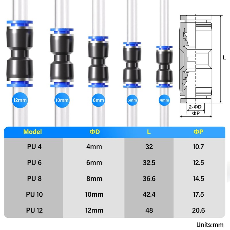TAILONZ PNEUMATIC Straight 2 Ways - 12mm Tube OD Push to Connect Tube Quick Fittings Push Lock PU-12 (Pack of 10)