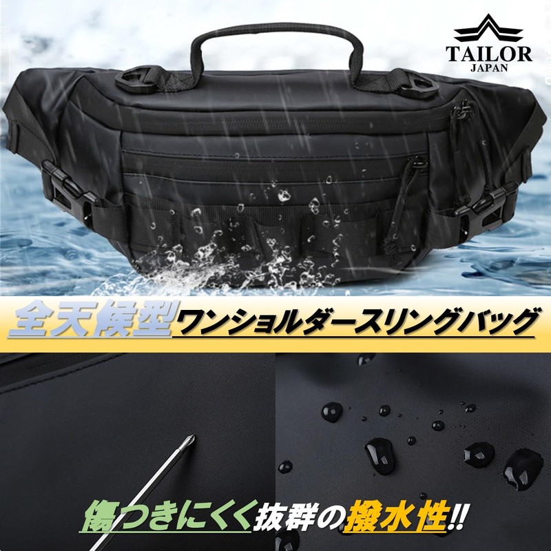 TAILOR JAPAN Shoulder Bag, Body Bag, One Shoulder Sling Bag, Waterproof, For Sports, Multi-functional Pouch, 1000D Nylon Specifications, Black