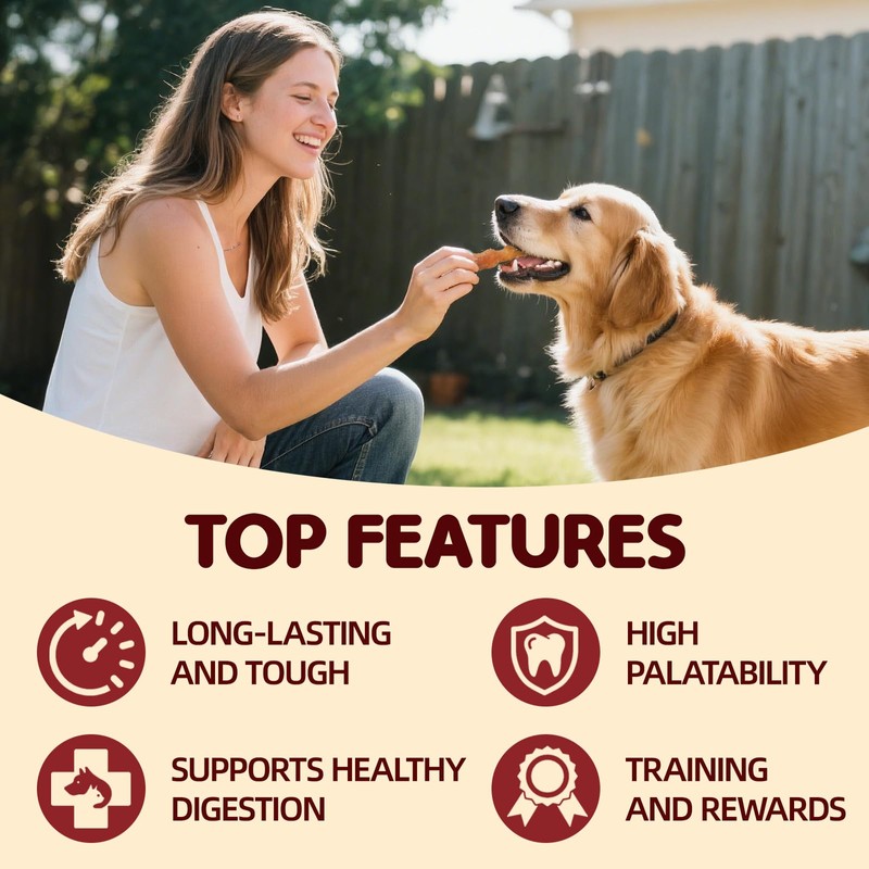 - High-Protein, Low-Fat Dog Chew Sticks for Active Pets: With 65%+ lean protein, these pet treats support muscle growth and energy, making them ideal for athletic dogs or training rewards. Their ultra-low fat (≤1%) content makes them a guilt-free, low-calorie treat for weight management