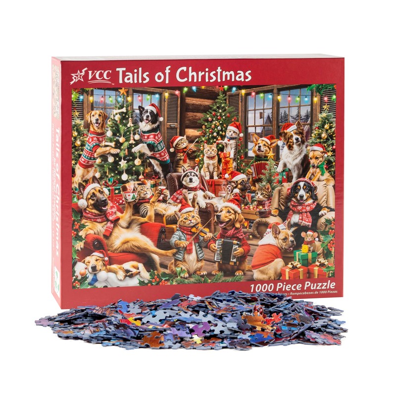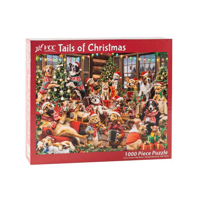 Tails of Christmas Jigsaw Puzzle 1000 Piece by Vermont Christmas Company - Dog & Cat Themed Puzzles with Randomly Shaped & Interlocking Pieces - 26 5/8" x 19 1/4"