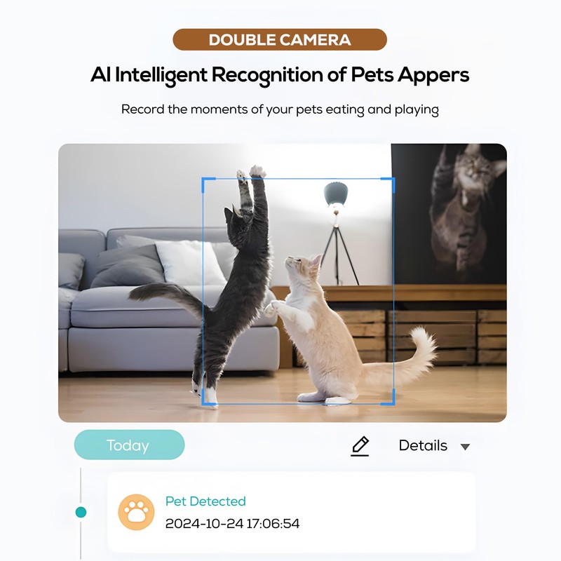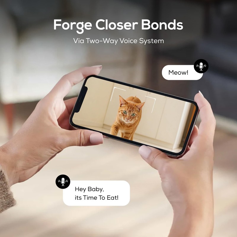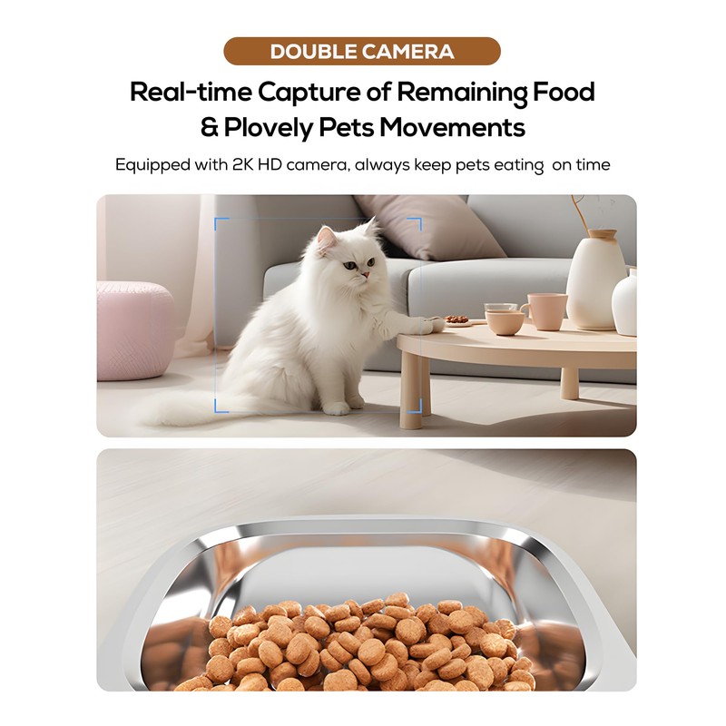- Dual 2K HD Cameras & Two-Way Audio: Stay close to your cat with live video from two angles cat view & bowl view. Built-in two-way audio of smart pet feeder lets you talk and listen, unlike standard automatic pet feeders with camera. Enjoy WiFi-enabled streaming with no subscription fees.