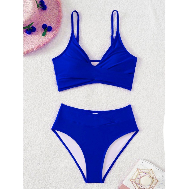 Tainehs Women's Bikini Sets Two Piece Swimsuit V Neck Twist Front V Cut Bottom Bathing Suit Royal Blue