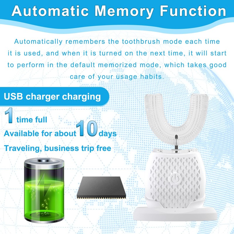 - 🦷 U-Shaped Design for Superior Cleaning ✓ Perfect Tooth Alignment: The U-shape fits naturally with your teeth, cleaning deep between teeth and gums better than regular toothbrushes. ✓ Ergonomic for Adults: Engineered for comfort and efficiency, it cleans all surfaces (front, back, and sides) with powerful sonic vibrations for 360° oral care. ✓ Matching up the high-frequency sound wave vibration, it can quickly and deeply clean the surface and inside of the tooth in all direction, providing dental health protection.