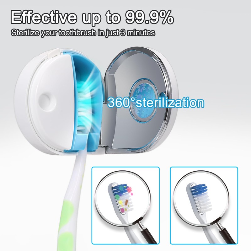 - 🦷Sterilizer Effect up to 99.99% - The toothbrush case with UVC light deeply sanitizer your toothbrush.Let your family have a healthy life. One Holder just holds one toothbrush, eliminate cross-infection between toothbrushes.(Comes with a UV test card, you can test the authenticity of the product yourself.)