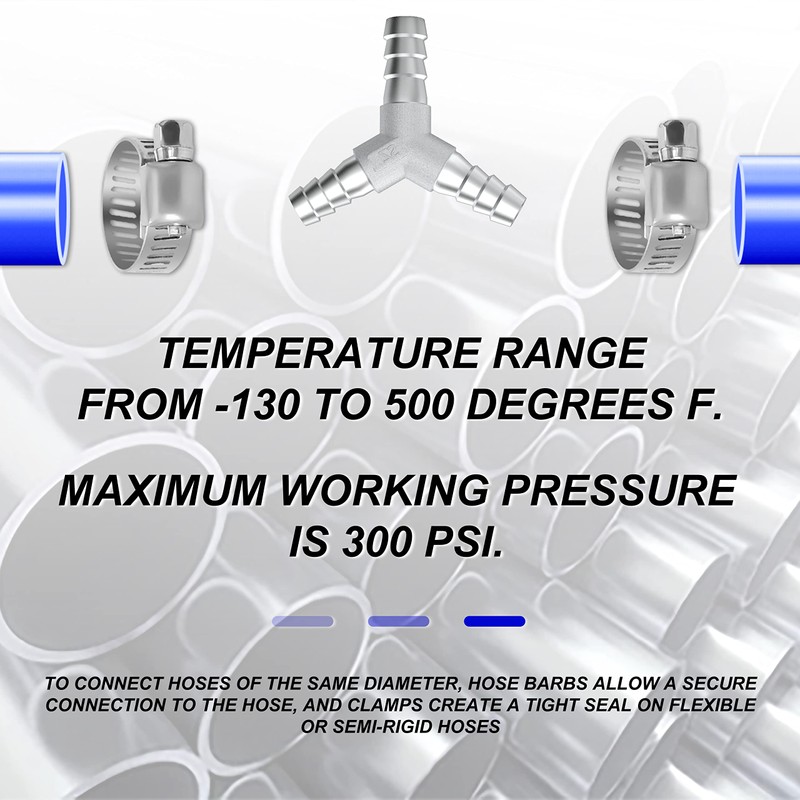 - Función: se utiliza para conectar mangueras del mismo diámetro, la lengüeta de la manguera se puede conectar firmemente a la manguera, y la abrazadera de la manguera puede formar un sello hermético en mangueras flexibles o semirrígidas.