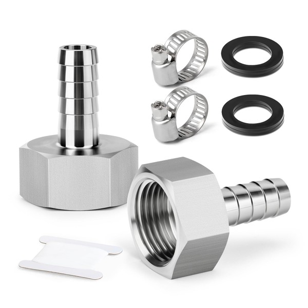 TAISHER 2PCS 304 Stainless Steel Garden Hose Repair Connector, 5/16" Barb x 3/4" GHT Female Garden Hose Adapter with Hose Clamps