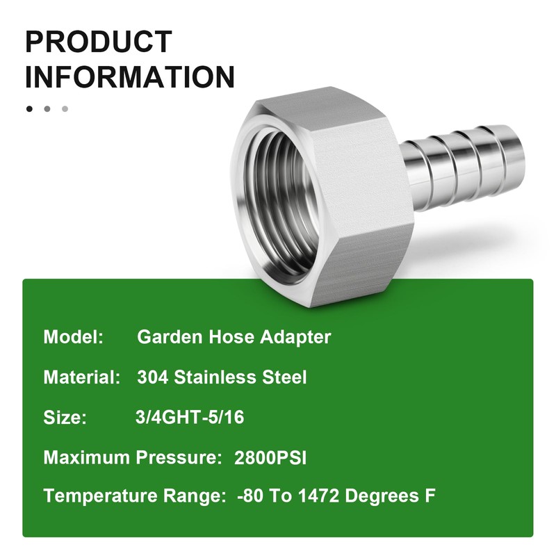 | Size: | 5/16" Barb x 3/4" GHT Female(2PCS) |