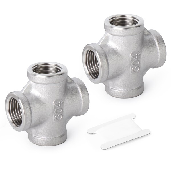 TAISHER 2PCS Stainless Steel 4 Way Pipe Fittings, 1/4" BSP Female Pipe Fittings