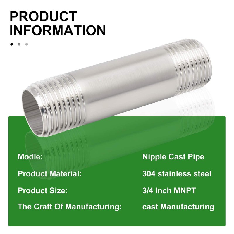 - Product Type —— Nipple Cast Pipe(3/4"Male NPTx 3/4"Male NPT,2"style is about 50 mm length),NPT thread size does not actual diameter, it is only nominal pipe size.