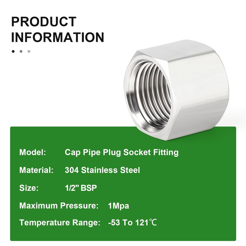 - [ Product Type ] Cap Pipe Plug Socket Fitting(1/2"Female BSP) for industry connecting pipes or fittings with different end types,diameters,or materials.