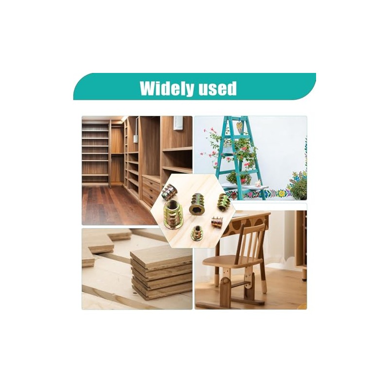 • Product material: wooden thread inserts are made of zinc alloy material, high hardness, good tensile strength, corrosion resistance, rust protection, strength and long service life.