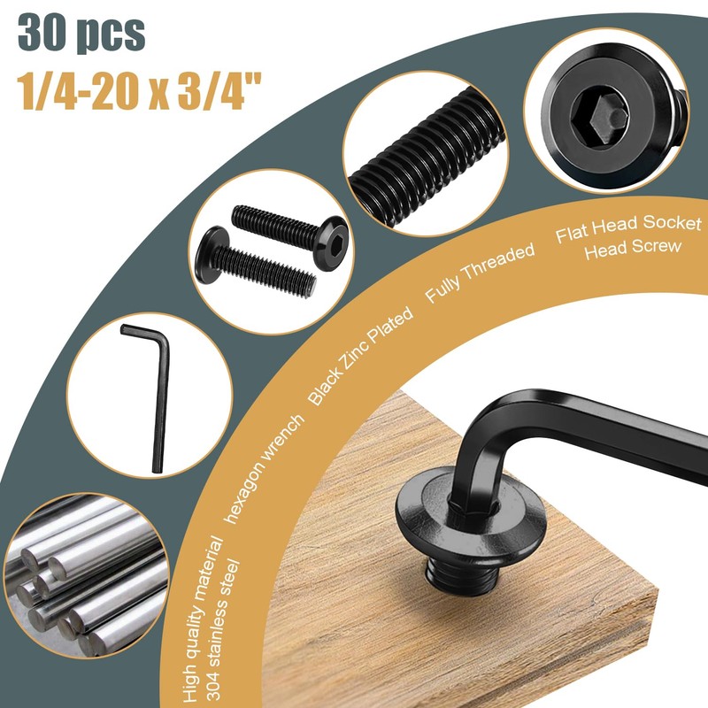 - Packaging:30pcs 1/4-20 x 1 Inch +1pcs Hex Spanner;Color: black.