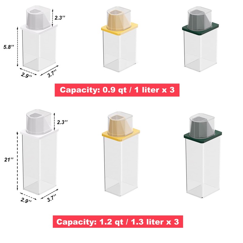 • Multiple Uses: Our food storage containers are perfect for organizing rice, grains, flour, snacks, nuts, crackers, sugar, pet food and more; Suitable for kitchen, fridge, cabinet, pantry organization, or even as a laundry detergent dispenser