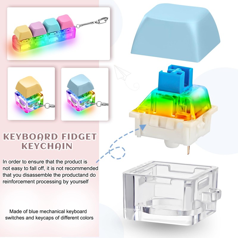 - Thoughtful Gifts Choice: the mechanical key toy is delicate and colorful, ideal for sending to your father, mother, colleagues, classmates, relatives and others who need it, to show your kindness and care to them; Tips, in order to avoid power waste, please check whether the product has a transparent plastic sheet blocking the gap between the keycap and the shaft body, and it can be used normally after removing it