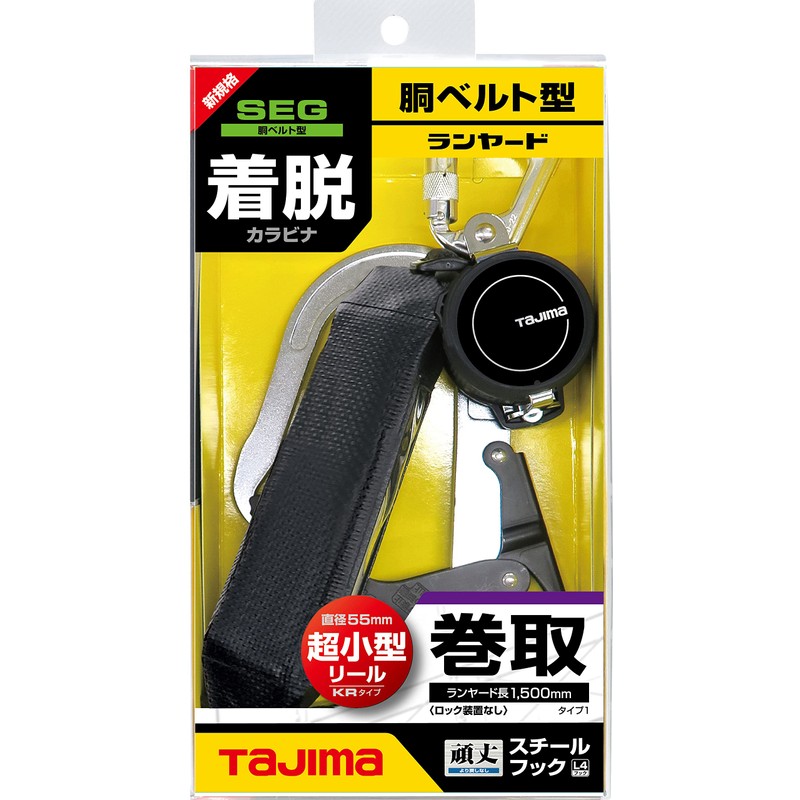 Tajima B1KR150FA-CL4 Lanyard for Torso Belts, Easy to Remove When Not in Use, Single Lanyard, Ultra Small and Lightweight Reel, Lightweight Steel Hooks, L4, Switchable to Auto Stop, Adjustable Stopper