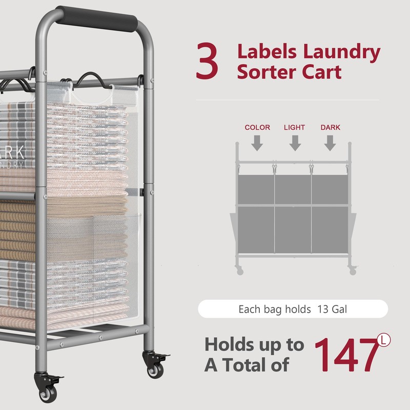 • 【Easy Assemble】Clear and detailed instructions, numbered parts and assembly tools are included in the package to ensure you can assemble this laundry sorter cart easily