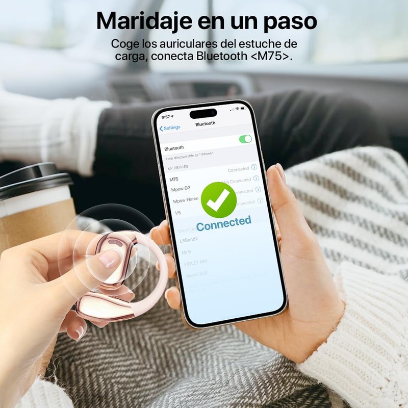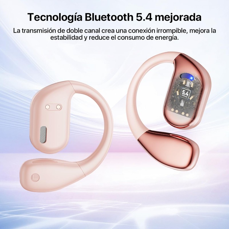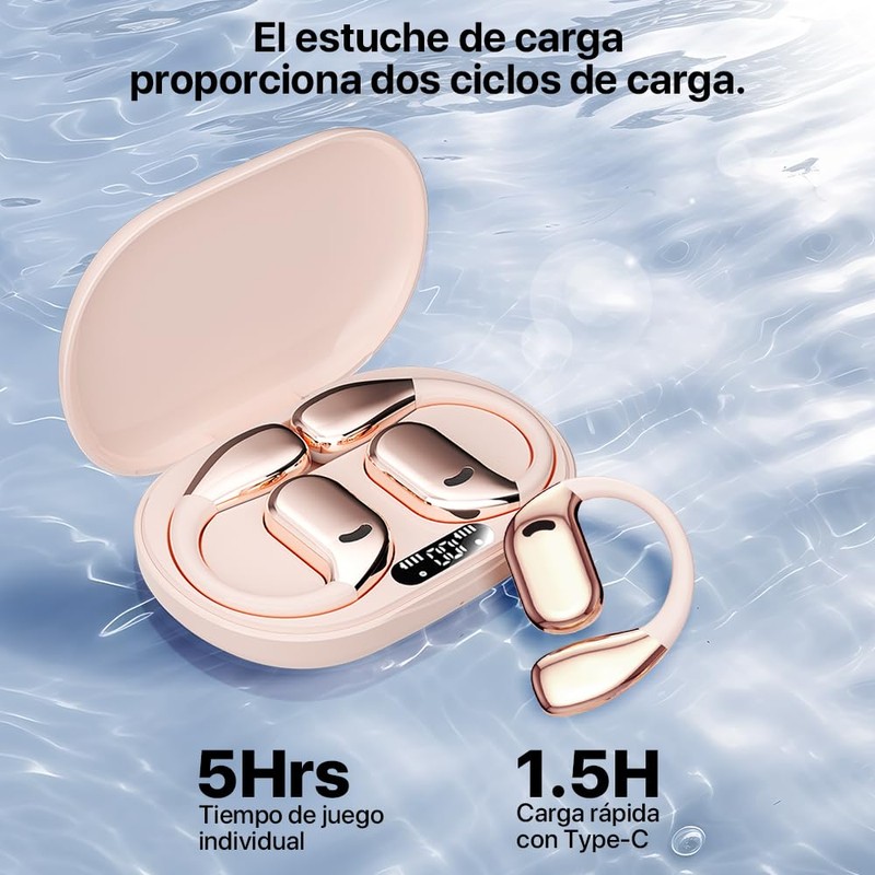 - [Comodidad todo el día, uso sin dolor]: Diseñados para la máxima comodidad, estos auriculares de oreja abierta encajan perfectamente, asegurando que puedas usarlos por horas sin molestias. El diseño ergonómico los mantiene firmemente en su lugar, minimizando el riesgo de que se caigan, incluso durante los momentos más activos.
