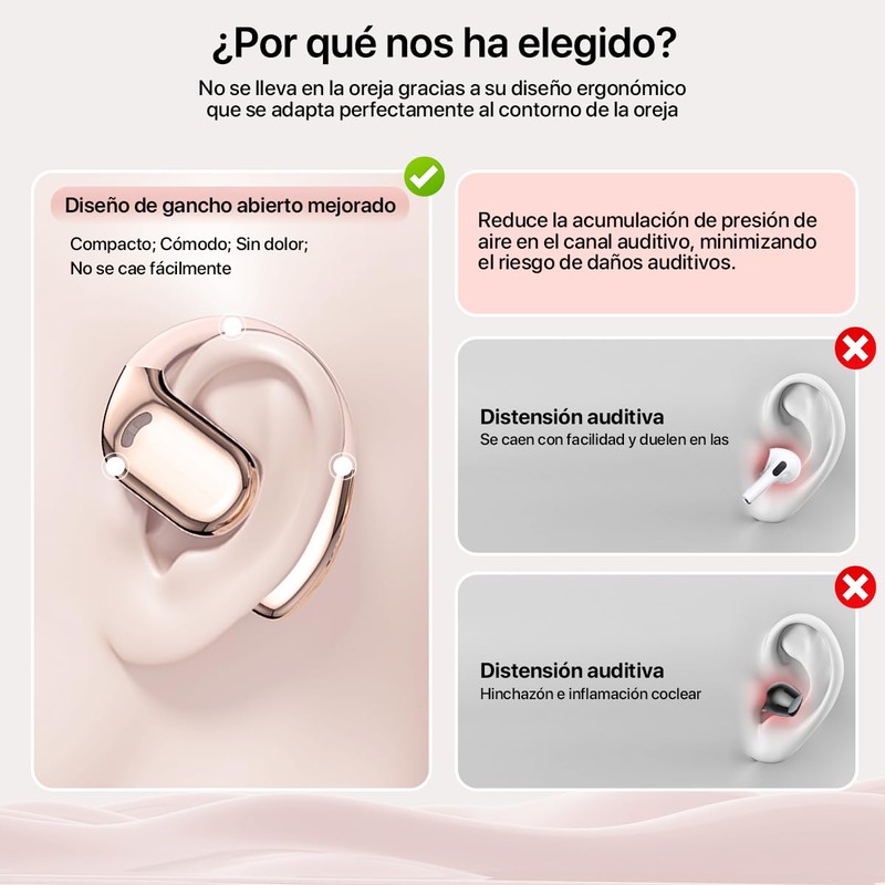 - [Diseño elegante y minimalista, regalo perfecto en rosa]: Con una estética elegante y minimalista y un delicioso tono rosa, estos auriculares de oreja abierta no son solo un gadget tecnológico sino también un accesorio elegante. Son un excelente y pensado regalo que cualquier destinatario, especialmente una mujer, apreciará y disfrutará.