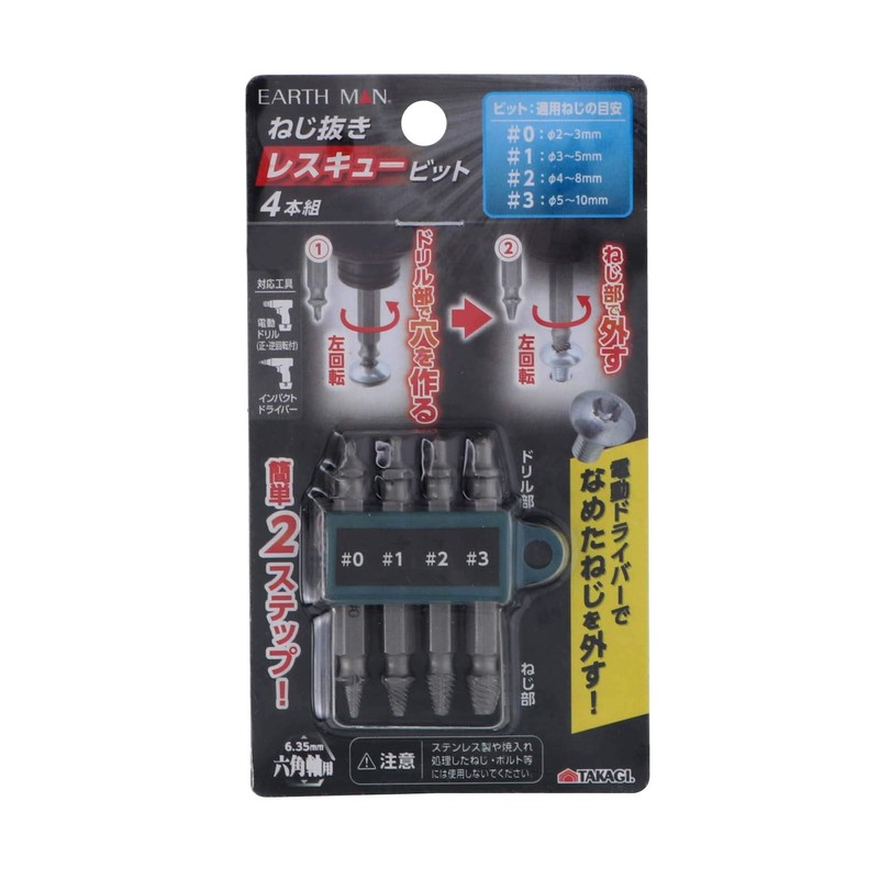 Takagi EARTH MAN Screw-Out Rescue Bit, Set of 4