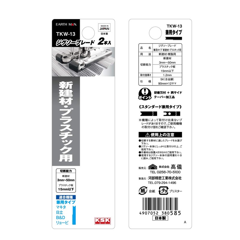 Takagi EARTH MAN TKW-13 Jigsaw Blade 2 Piece Set for New Construction Materials and PC