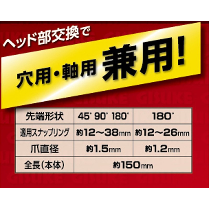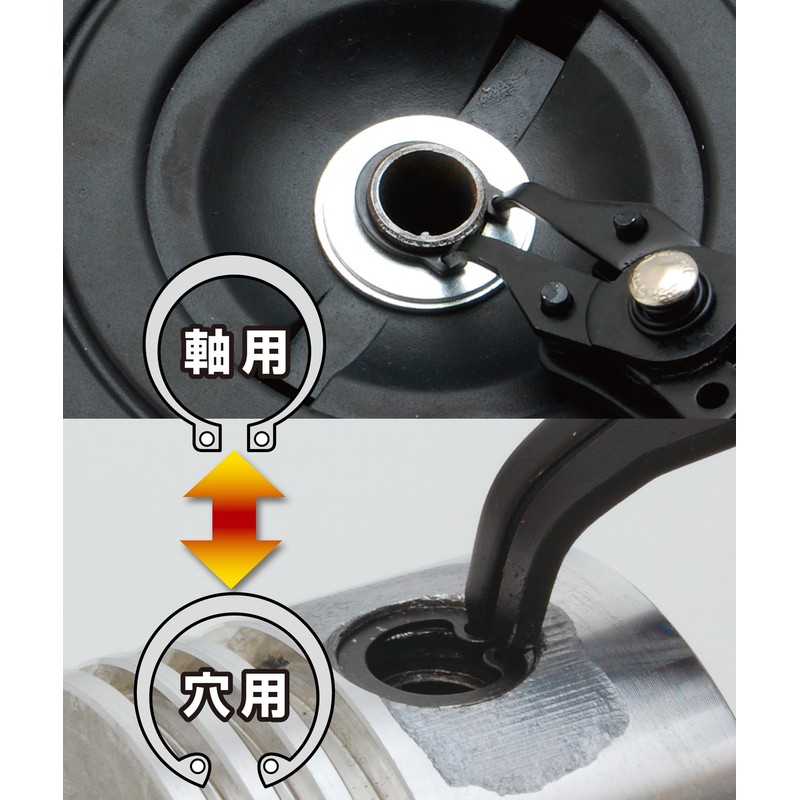 • For attaching and detaching metal fittings for the shank and hole of the snap ring