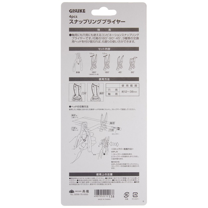 Takagi GISUKE Snap Ring Pliers for Both Holes and Shanks, 4 pcs