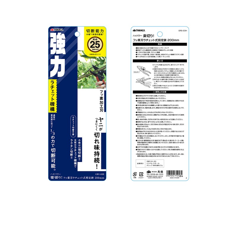 Takagi GRS-03H High Power Easy Cutting Fluorine Blade Ratchet Pruning Shears 7.9 inches (200 mm)