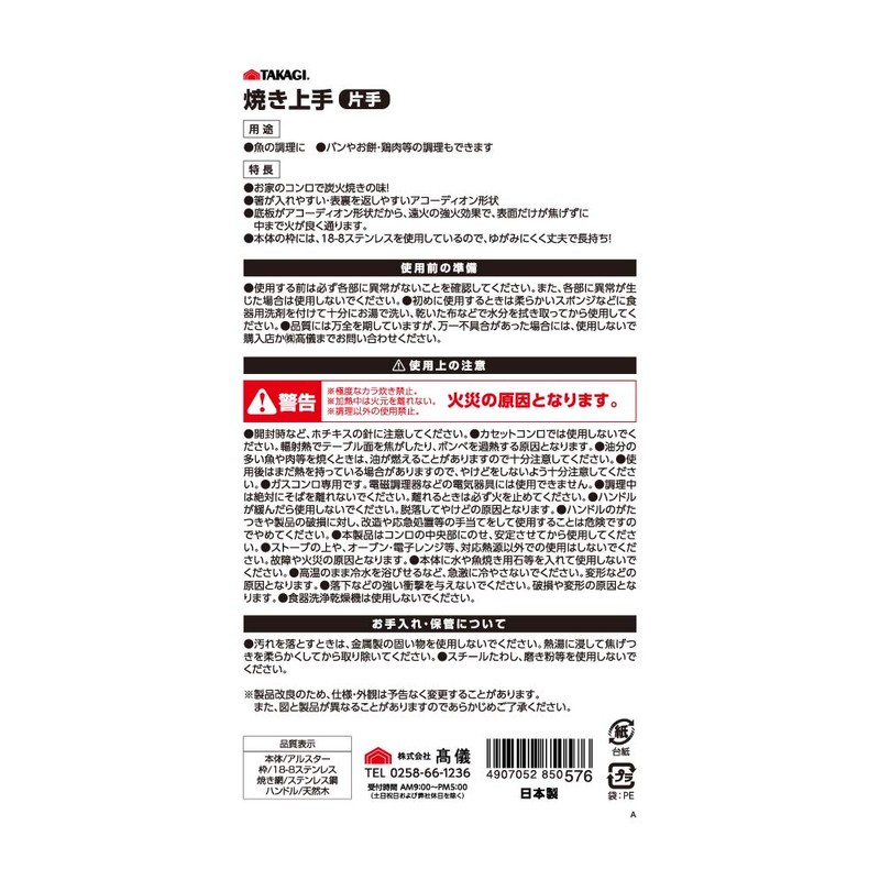 - Materials: Main body: Alstar, Frame: 18-8 stainless steel, Handle: Natural wood