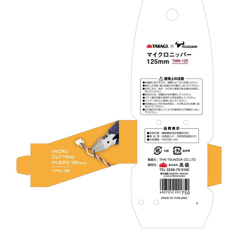 Takagi x TSUNODA Micro Nipper, 4.9 inches (125 mm), TMN-125 with Springs, Accessory Processing, Wire Working, Precision Machining, Work Tool, Cut, Cutting, Pliers, Small Nippers