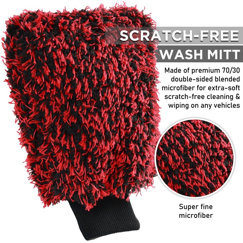 - Premium Scratch-Free Car Wash Mitt: The TAKAVU car wash mitt is made from premium 70/30 double-sided blended microfiber for extra softness and high cleaning efficiency. The long and dense fiber acts like a hook that easily traps dirt inside and doesn't fray or fall apart after a long time of use. Keep your car clean and anti-scratch on your car's paintwork with this super soft microfiber car wash mitt.