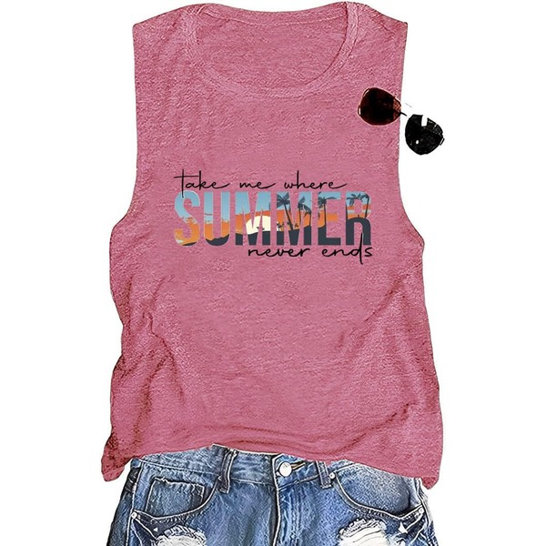 Take Me Where Summer Never Ends Letter Printed Tanks Cute Summer Sleeveless Workout Tshirts Fun Hawaiian Adventure Trips Soft Cotton Casual Top, Red Large