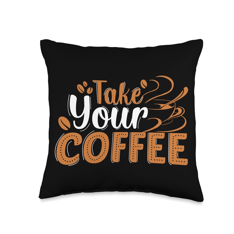 Take Your Coffee Java Drink Brew Gift Beans Cute Take Your Coffee Throw Pillow, 16x16, Multicolor