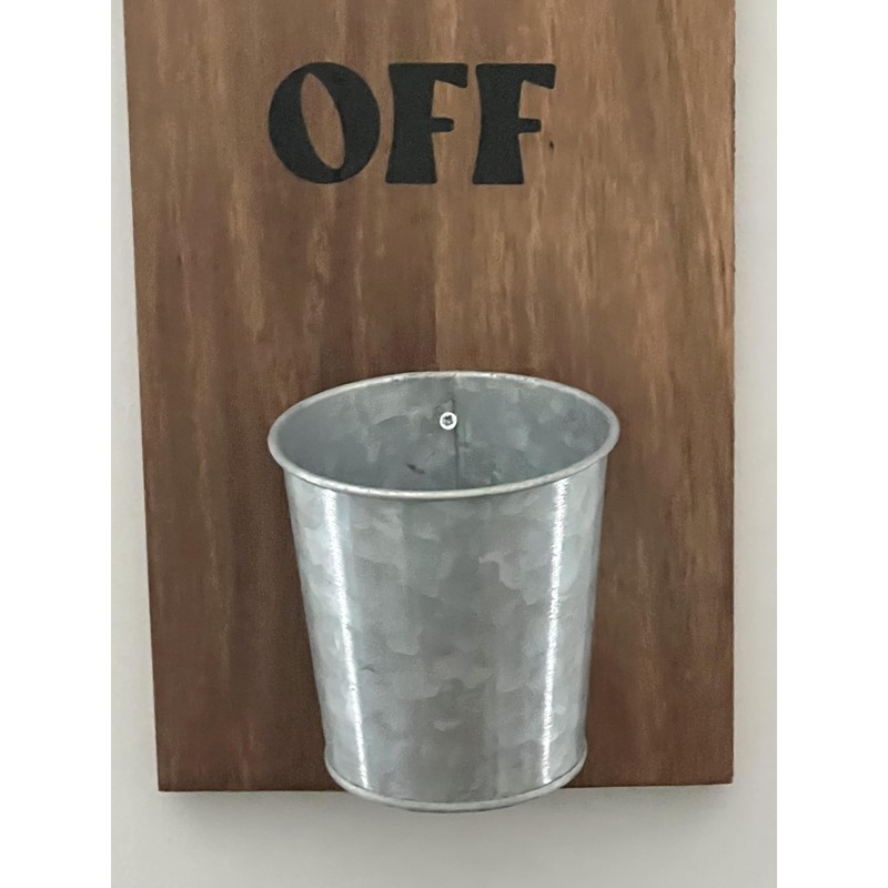 - 24" high, 7" wide, 5" deep which includes the attached tin bucket for caps