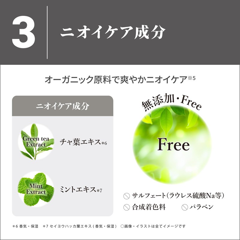 - 【こだわりの成分】六種類の保湿保護成分配合。 オーガニック原料で爽やかにニオイケア。