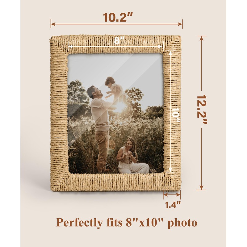 takfot Boho 8x10 Picture Frame, Natural Boho Rattan Photo Frame with Real Glass Paper Rope for Wall and Tabletop Display Gift for Mom Grandma Family Friends