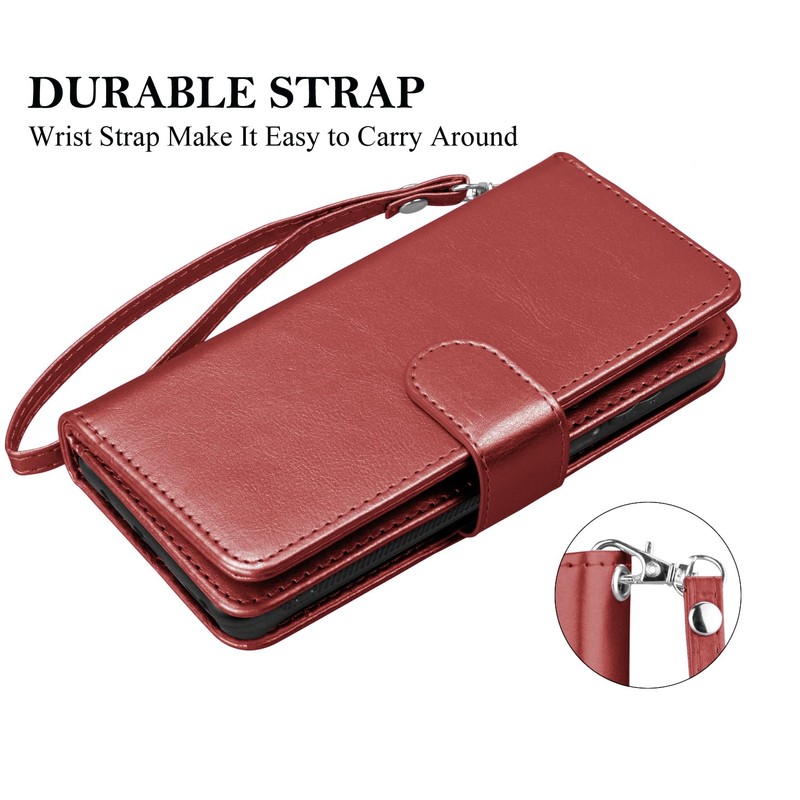 Takfox Wallet Case for Moto G Stylus 2023 5G, PU Leather Credit Card Holder Slots Case Folio Flip Detachable Magnetic Cover Kickstand & Carrying Strap, Wine Red