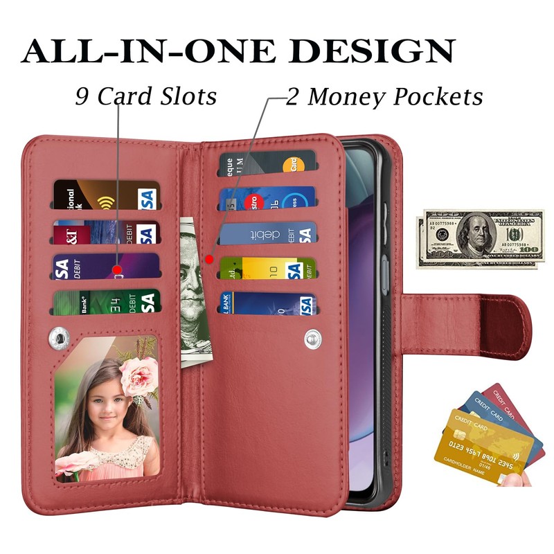 - 👑[Multi-Functional] Moto G Stylus 5G 2023 Leather Case built-in 9 card slots & 2 money pockets conveniently store multi credit cards, cash, ID, drivers license, lovers or child's photo. Meeting your all day needs outside.