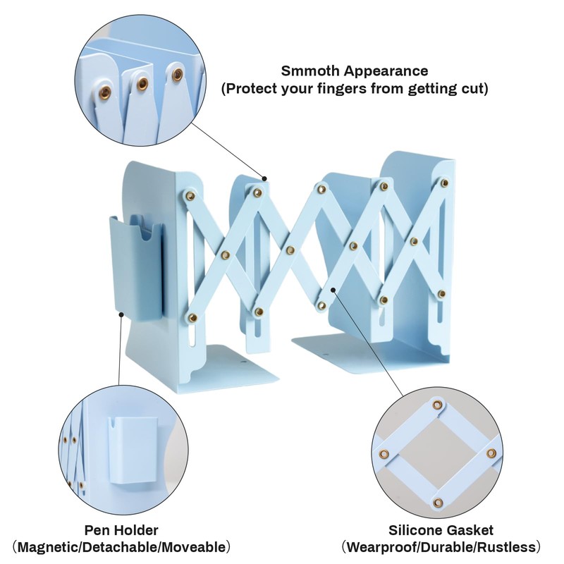 Flexible Space: 3.9 inch to 18.9 inch adjustable bookend for easy portability and space savings