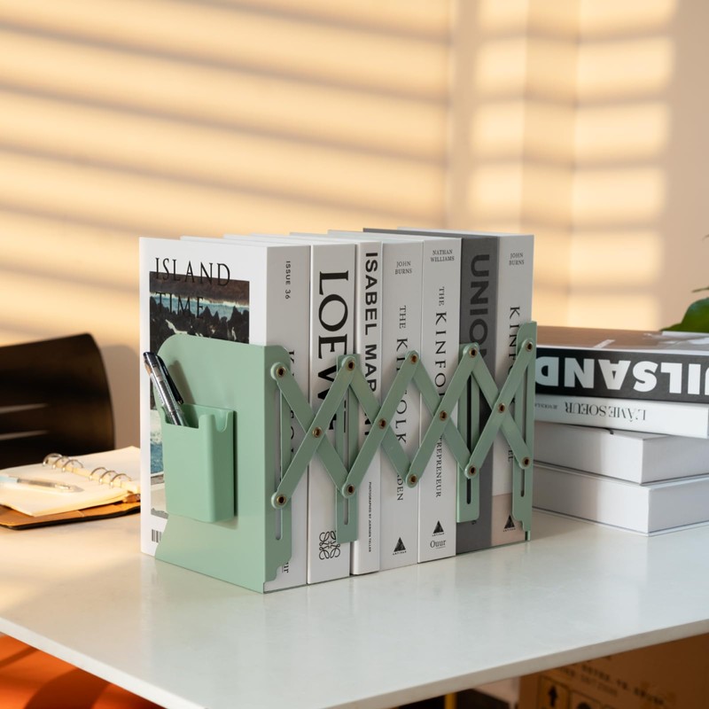TAKORUY Adjustable Bookends, Desktop Bookshelf, Book Ends for Shelves, Book Ends for Heavy Books, Magazine Holder (Green)