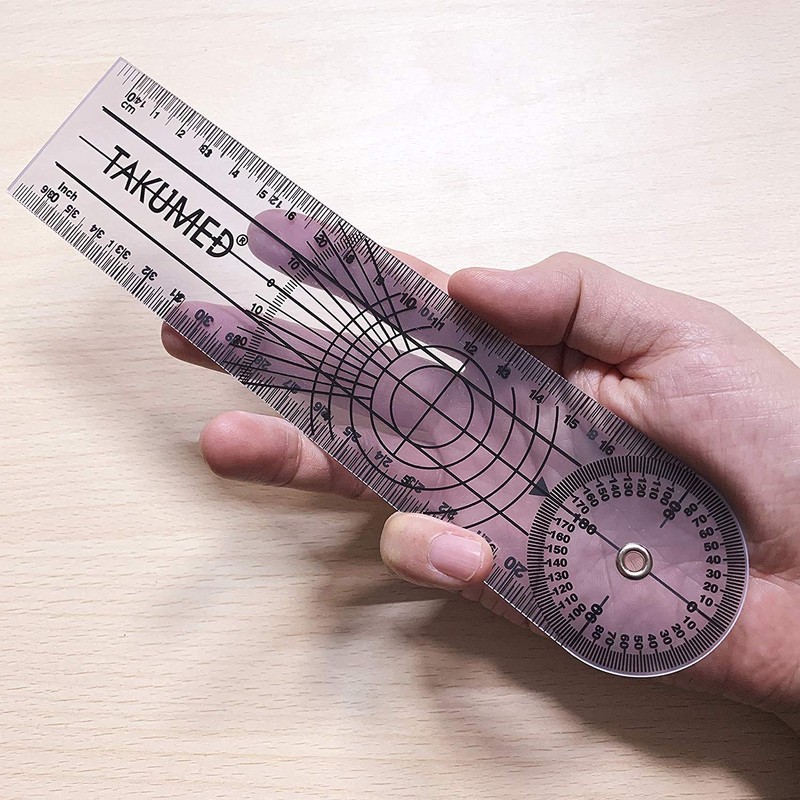 - Application: Use for measuring angle, length and range of motion. The protractor version starts from 0 degrees, and can be measured up to 180 degrees (error ± 1 degree) regardless of the height of up or down