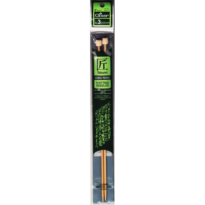 Takumi Bamboo Single Point Knitting Needles 9"-Size 3/3.25mm